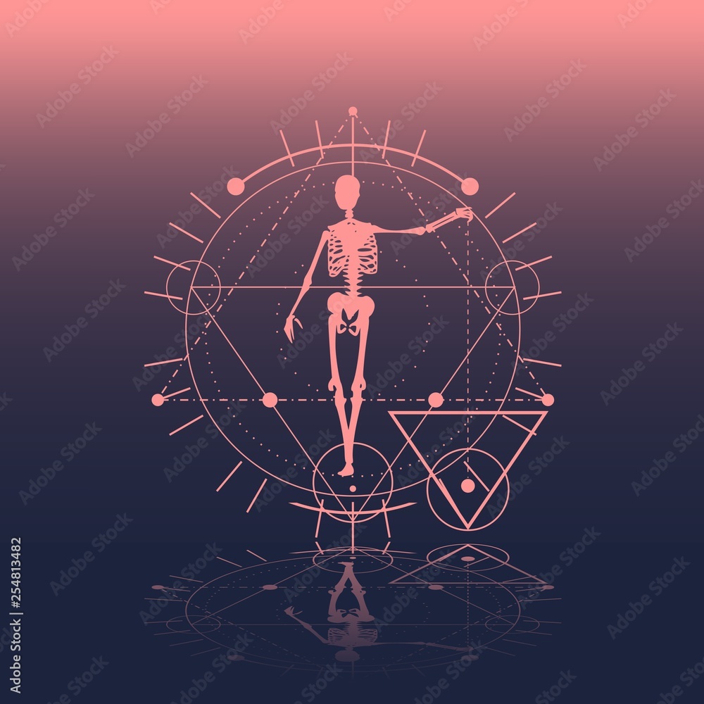 Mystery Witchcraft Occult And Alchemy Tattoo Sign Mystical Vintage Gothic Geometry Thin Lines Symbol With Silhouette Of A Human Skeleton Stock Vector Adobe Stock